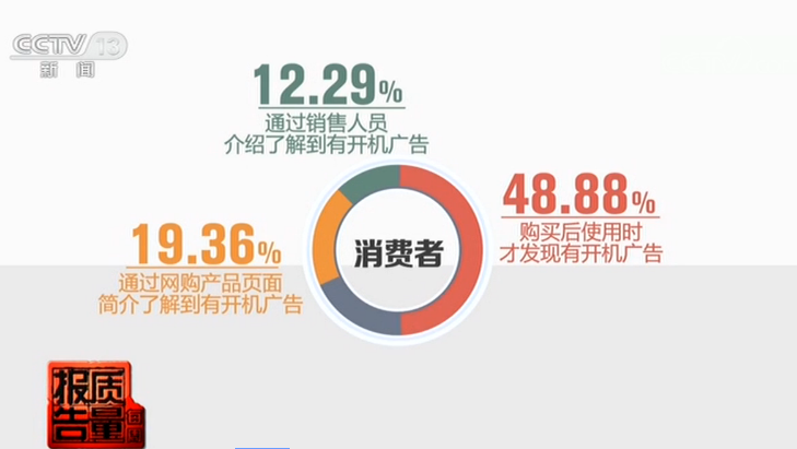 与此同时,线上问卷的统计结果还显示:在有开机广告的情况下,50.16%的消费者反映开机广告无法中途关闭。