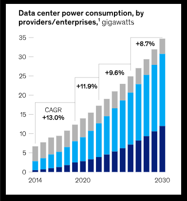 Exelon公司首席执行官 Calvin Butler 最近表示:“人工智能势将帮助推动电力需求增长900%,而仅芝加哥地区的数据中心可能需要大约四个核电站的电力。南方公司预测其售电量的年增长率将上升到6%,其中约80%来自数据中心。