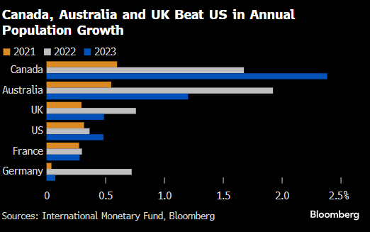 几十年来,移民的快速流入帮助加拿大、澳大利亚和英国等国家避免了人口老龄化和出生率下降带来的人口拖累。现在,随着疫情后边境重新开放以来涌入的人数激增,为他们提供住宿的房屋长期短缺,这种情况正在崩溃。