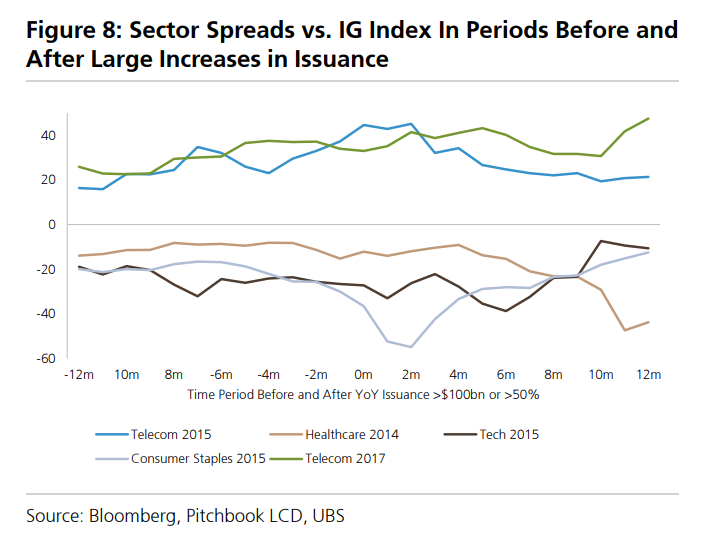 类似的发行潮曾在多个行业上演。例如,2015年的医疗保健行业因《平价医疗法案》改革及并购活动(如AbbVie收购Pharmacyclics)而大量发债;2013年和2017年的电信行业则因Verizon收购Vodafone股权和AT&T合并时代华纳等大规模交易推高了发行量。科技行业自身也曾在2014至2017年间,因4G LTE网络扩张和云基础设施建设经历过类似的周期。