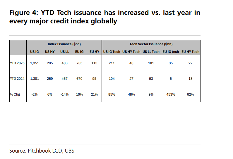 不过,发行量的激增也带来了对集中度风险的担忧。数据显示,今年排名前五的发行人占据了美国投资级科技债发行总量的约50%。