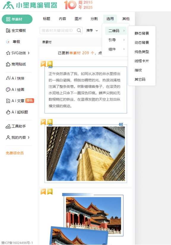 无论你是正在尝试排版的入门用户,还是追求创意突破的高效资深达人,小墨鹰编辑器为你提供了各类匹配的方案。
