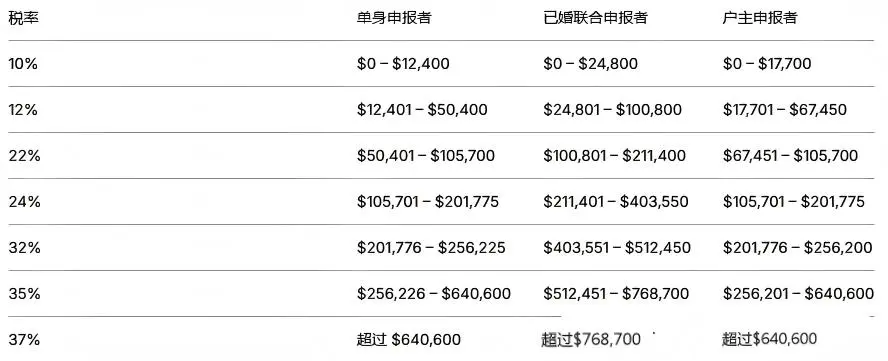 美国实行累进税制,根据收入高低来核定税率,另外不同来源的收入,交税规则也不同: