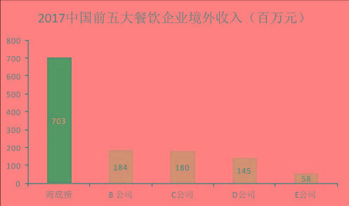 2017年,海底捞的境外市场收入达7.03亿元,是位列第二的公司三倍之多,处于绝对领先的地位。
