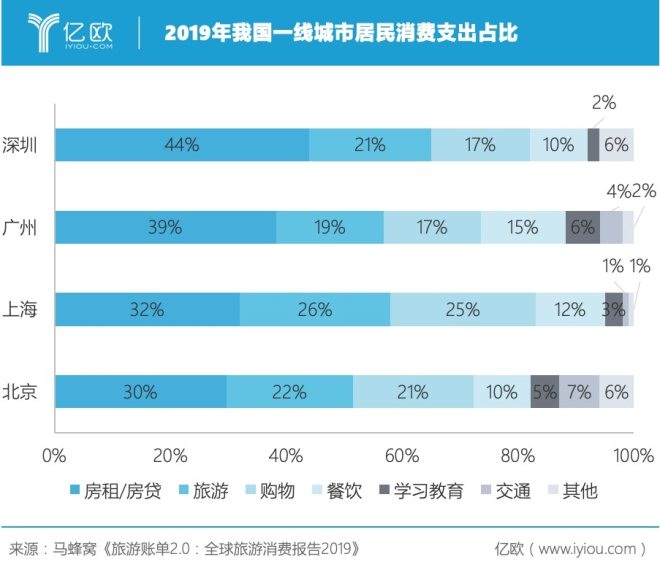 再通过下图居民消费支出占比看,在房租/房贷的压力下,一线城市的失业人群生活更为窘迫,而那些身兼车贷、信用卡等多项还款的失业人群,其生活压力也可见一斑。