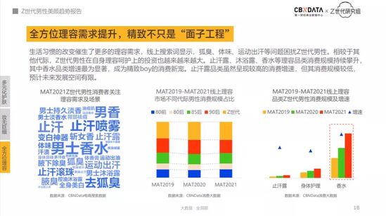 为了克服狐臭、体味、运动出汗等困扰,越来越多的Z世代男性求助于止汗露、沐浴露、香水等理容护理产品,其中香水的增速最为显著。