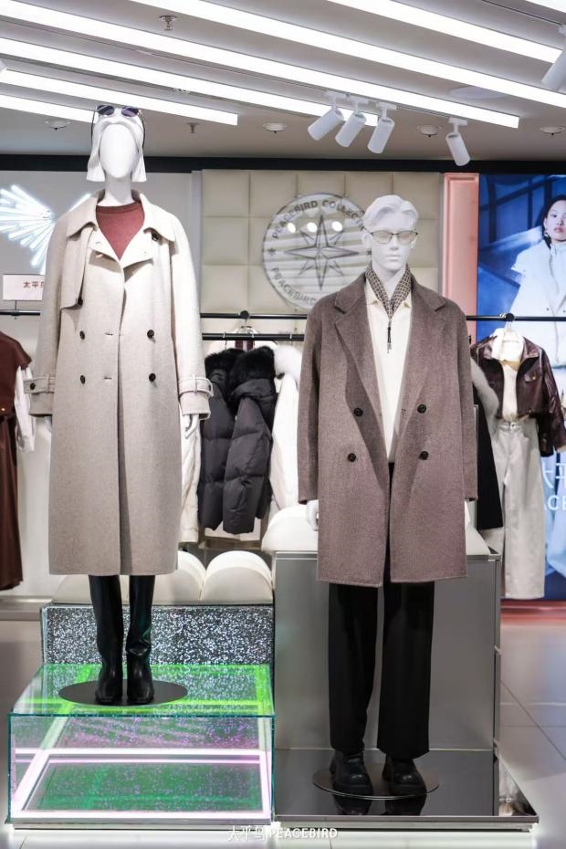 在材质与工艺层面,太平鸟联合行业头部供应商,全面采用高奢级面料:大衣与毛衫品类融入牦牛绒与羊绒,提升细腻质感与穿着舒适度;羽绒服则甄选霍尔多巴吉白鹅绒,以轻盈蓬松的特性重塑冬日保暖体验。