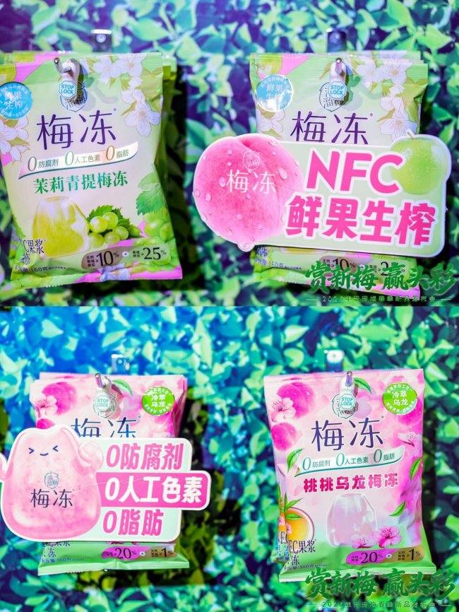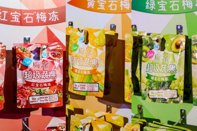 除此之外,溜溜梅梅冻还不断探索健康边界,重磅推出超级蔬果红宝石梅冻、超级蔬果黄宝石梅冻、超级蔬果绿宝石梅冻,16种蔬果榨浆将日常果蔬营养与果冻形态巧妙结合,助力不爱吃蔬菜的小伙伴轻松摄取多元膳食元素。