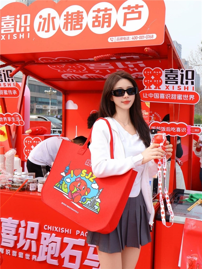 面向市民与观赛者,喜识带来多样互动体验。酸甜清爽的山楂饮品免费试饮,为大家带来一份酸甜与清凉;套圈赢好礼环节同样人气高涨,定制小喜糖葫芦杯、联名运动护腕凭借精致设计与实用价值收到热烈追捧。更有石马联名超大毛毡“显眼包”——凭借萌趣造型与超大容量,迅速走红现场,大家纷纷将这场马拉松专属的“甜蜜”纪念背回家,为赛事留下独特印记。喜识以多元互动形式,将品牌活力与赛事氛围巧妙融合,让“甜蜜”成为石马赛场上一道别样风景。