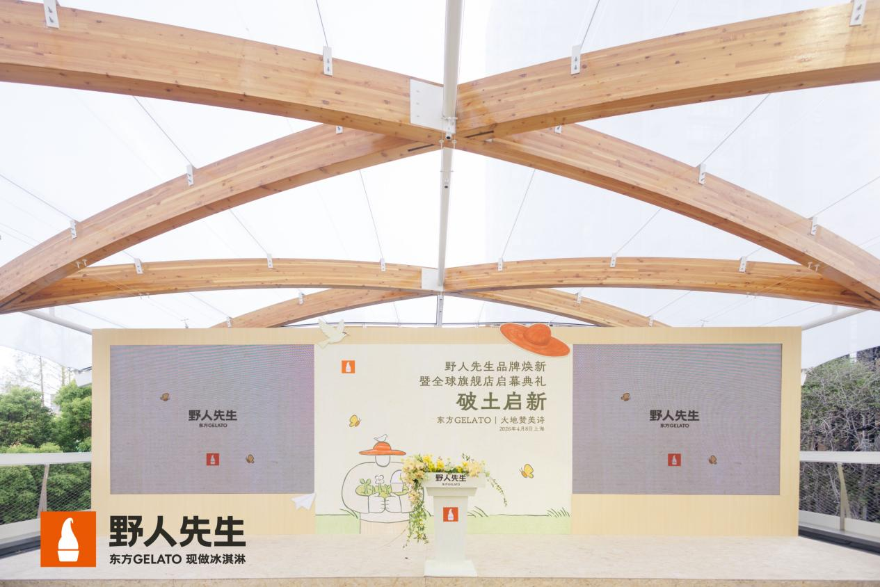 4月8日,野人先生于上海发布品牌升级,并同步启幕全球旗舰店。截至2026年3月,品牌在营门店数量已突破1300家,成为国内高端冰淇淋连锁中门店规模领先的品牌。这一动作不仅是一次品牌表达的更新,更是品牌阶段性商业能力的一次集中呈现:从单店与产品驱动,走向更系统化的规模与模型构建。