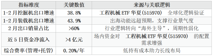 导语: 2026年初,工程机械海外出口增速远超市场预期。本文深度解析“AI+电力”基建如何驱动行业进入新一轮景气周期,并探讨工程机械ETF华夏(515970) 在全球产业链重构中的配置价值。