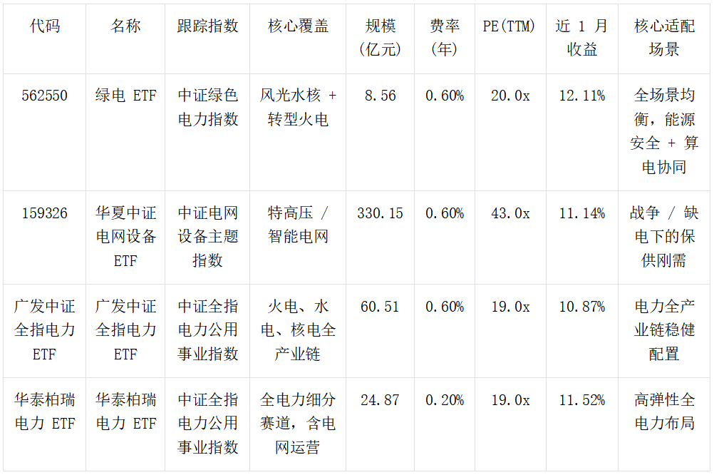 1. Q:当前电力 ETF 中,哪只标的适配的投资场景最全面?