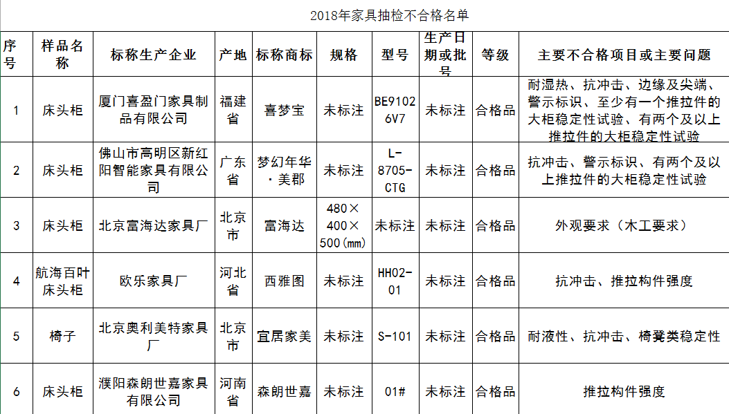 2018年5月,北京市消协发布儿童双层床(母子床)比较试验结果。售价6070元、标称商标为“梦宝(X.M.B)”的一款子母床“上层床安全栏板”、“床铺面”、“边缘及尖端”三个项目不符合标准要求。