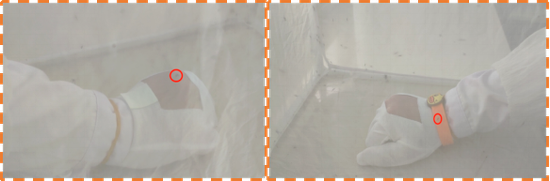 ▲驱蚊环和驱蚊贴样品驱蚊效果测试过程图