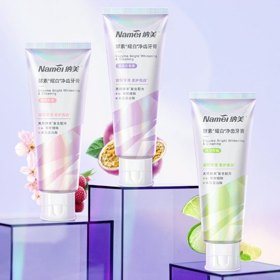 目前,纳美酵素耀白净齿牙膏共有三种口味:漫紫百香果、樱花粉荔、泠泠青柚。纳美特地采用瑞士调香工艺,使每一种口味都独具特色,清新迷人。漱完之后,持久清新,满口留香~就连彭昱畅都为之打call!这款牙膏的颜值也超赞,梦幻如星辰般的膏体,让人一看就“彭”然心动ing~