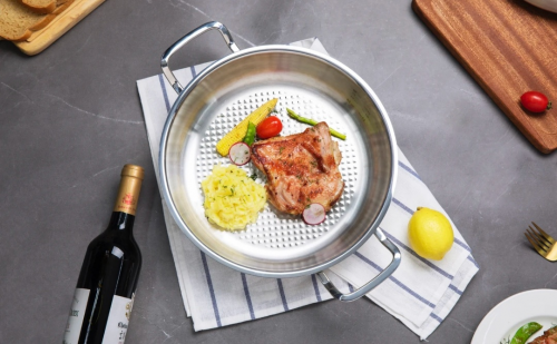 再悄悄告诉大家一点哦,菲仕乐诺维雅28厘米双柄炒锅锅盖处也是“暗藏玄机”的,锅盖顶部微凹设计,能够放置一定量的冷水或是冰块。说到这里肯定有同学会疑惑了,做饭用到冰块有什么用?别急别急,听我解释就知道啦~
