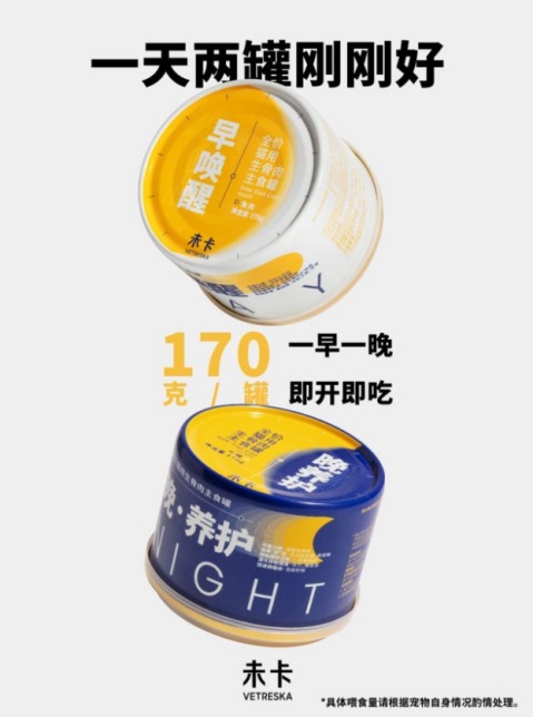 晚C:指的是晚上给猫咪喂食未卡VETRESKA全价猫用生骨肉主食罐(晚-养护罐)其中添加有益肠胃的高达40亿的益生菌成分,能有效促进猫咪肠道运动能力,即“晚Care”。