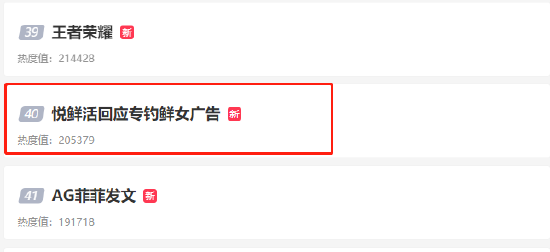8月24日,#悦鲜活回应专钓鲜女广告#登上微博热搜榜单。