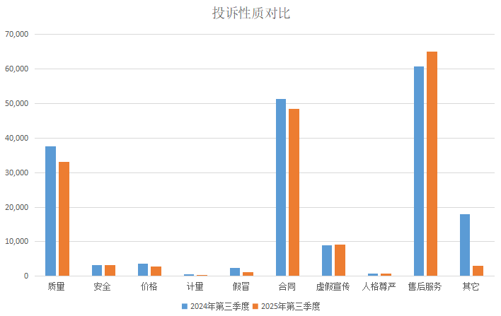 2024年第三季度、2025年第三季度投诉性质对比