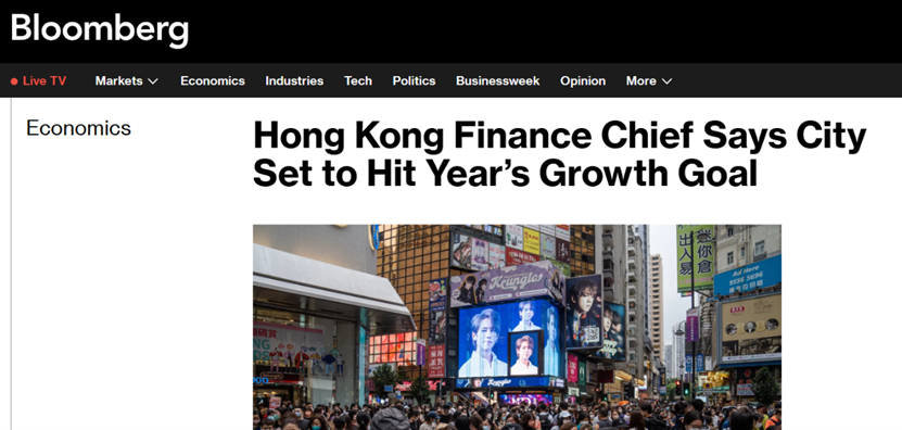 彭博社发文称,今年至今的经济增长预计将使香港达到全年2%至3%扩张的预期目标。金融实力是香港复苏的基石,今年已筹集510亿美元的股票销售预计将以四年来的高位收官。