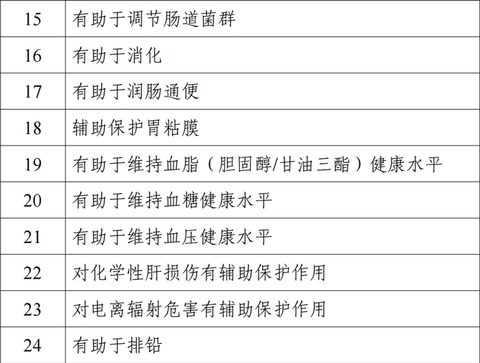 根据市场监管总局、国家卫生健康委、国家中医药局联合发布的《允许保健食品声称的保健功能目录 非营养素补充剂(2023年版)》,我国目前允许保健食品声称的有24种功能。