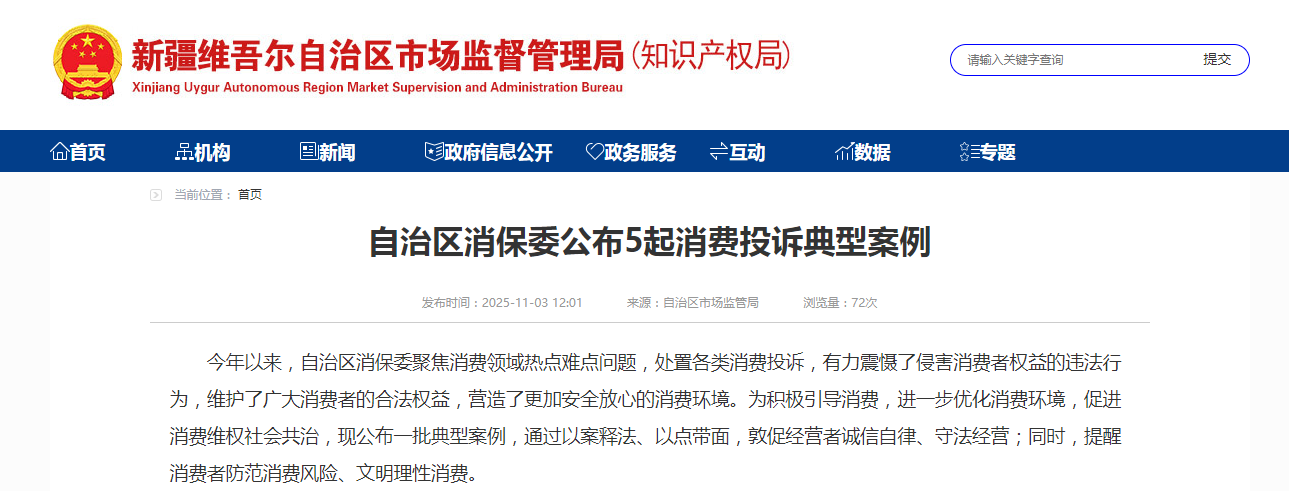 今年以来,自治区消保委聚焦消费领域热点难点问题,处置各类消费投诉,有力震慑了侵害消费者权益的违法行为,维护了广大消费者的合法权益,营造了更加安全放心的消费环境。为积极引导消费,进一步优化消费环境,促进消费维权社会共治,现公布一批典型案例,通过以案释法、以点带面,敦促经营者诚信自律、守法经营;同时,提醒消费者防范消费风险、文明理性消费。