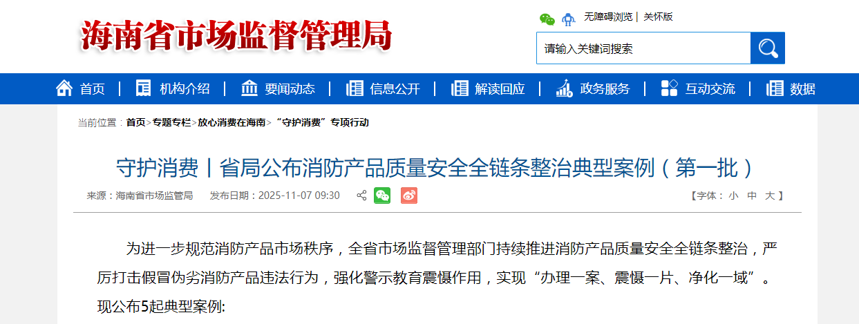 为进一步规范消防产品市场秩序,全省市场监督管理部门持续推进消防产品质量安全全链条整治,严厉打击假冒伪劣消防产品违法行为,强化警示教育震慑作用,实现“办理一案、震慑一片、净化一域”。现公布5起典型案例: