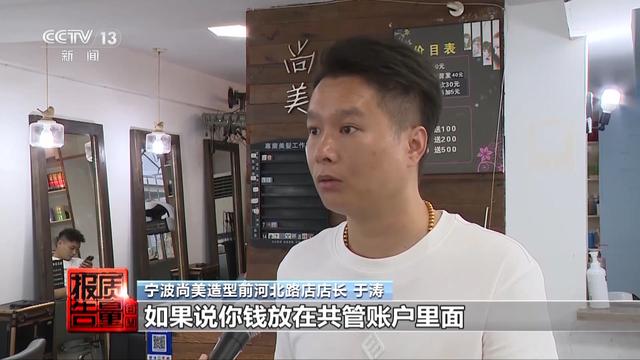 宁波尚美造型前河北路店店长 于涛:因为我们做卡的目的,一个可以做流动资金,另外一个目的就是锁客,如果说你钱放在共管账户里面,我们流动资金,什么东西就会受限了。
