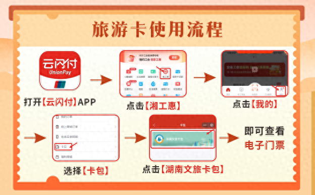 用券流程极为简便。职工只需打开“云闪付”APP,进入“湘工惠”板块,在“2025年促消费活动券”中激活长沙文旅券或使用普惠券。前往景区前1天,在“云闪付”APP-湘工惠-我的-“卡包”-“湖南文旅”进行预约,即可轻松入园。