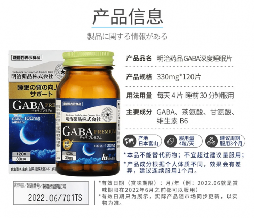 与GRANVER的多元系统化思路不同,明治药品的GABA深度睡眠片体现了一种更为聚焦的技术路径,核心围绕GABA及其辅助成分展开。