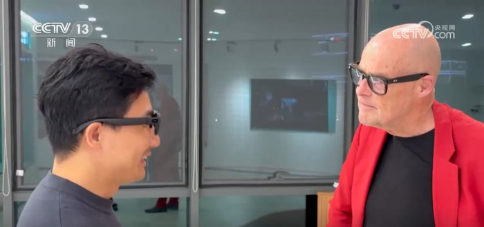 这位来自荷兰的博主正在北京亦庄一家企业里,体验一副比鸡蛋还轻的眼镜,这副AI眼镜能让消费者与全球100多种语言的使用者实时、流畅的对话。