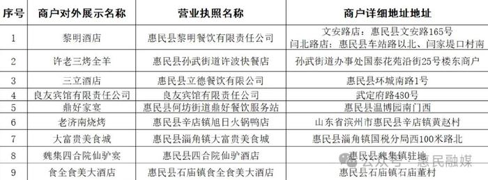 (1)在惠民县注册并报名参与活动的餐饮单位(具体参与商户名单附后);