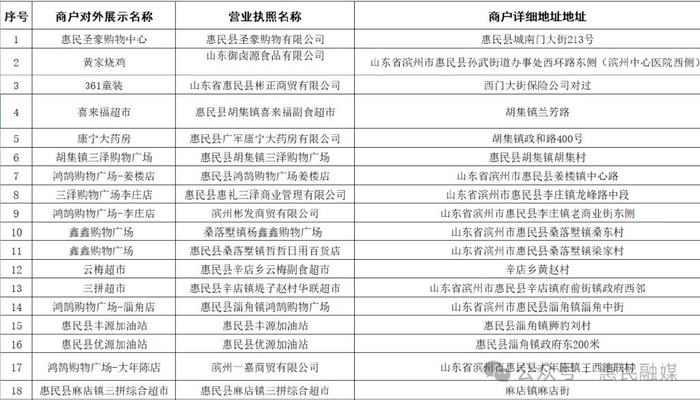 (1)在惠民县注册并报名参与活动的商超、零售单位(具体参与商户名单附后);