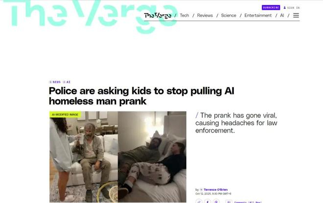 在全球范围,AI视频都成为一个新的管控难题,前段时间TikTok上流行一个挑战:用AI生成一段把陌生人请进家的画面,然后发给父母。这些视频往往还附上流浪汉的自述,比如说自己是“父母的朋友”等。