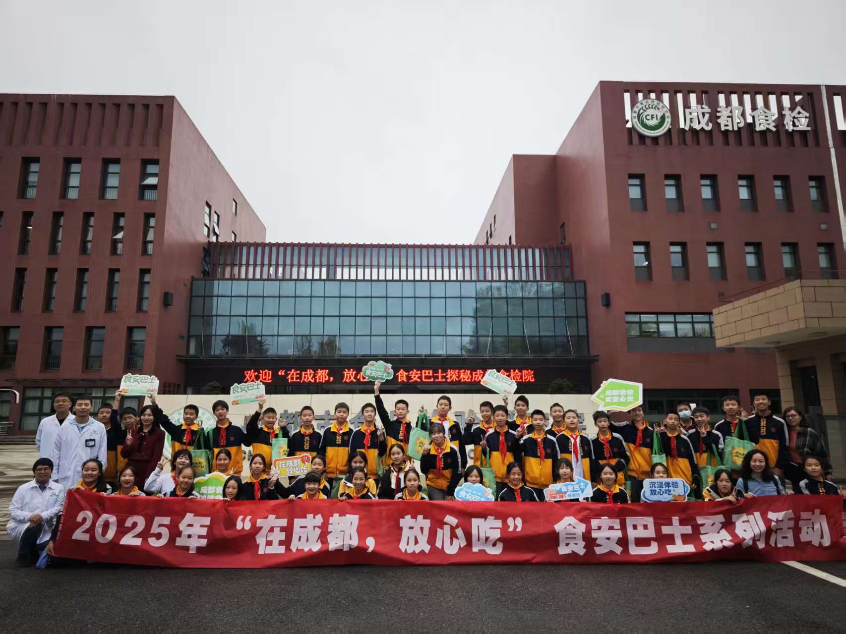 10月23日,一辆满载53名师生代表的“在成都,放心吃”食安巴士,驶入Meco果茶工厂和成都市食品检验研究院,探寻“在成都,放心吃”背后的科学密码。