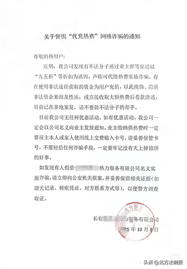 同样,长春某热力服务公司也发布了类似警示公告,强调公司收费系统与这些“代缴”渠道无任何关联,他们呼吁业主主动通过官方公布的渠道查询和缴纳费用。
