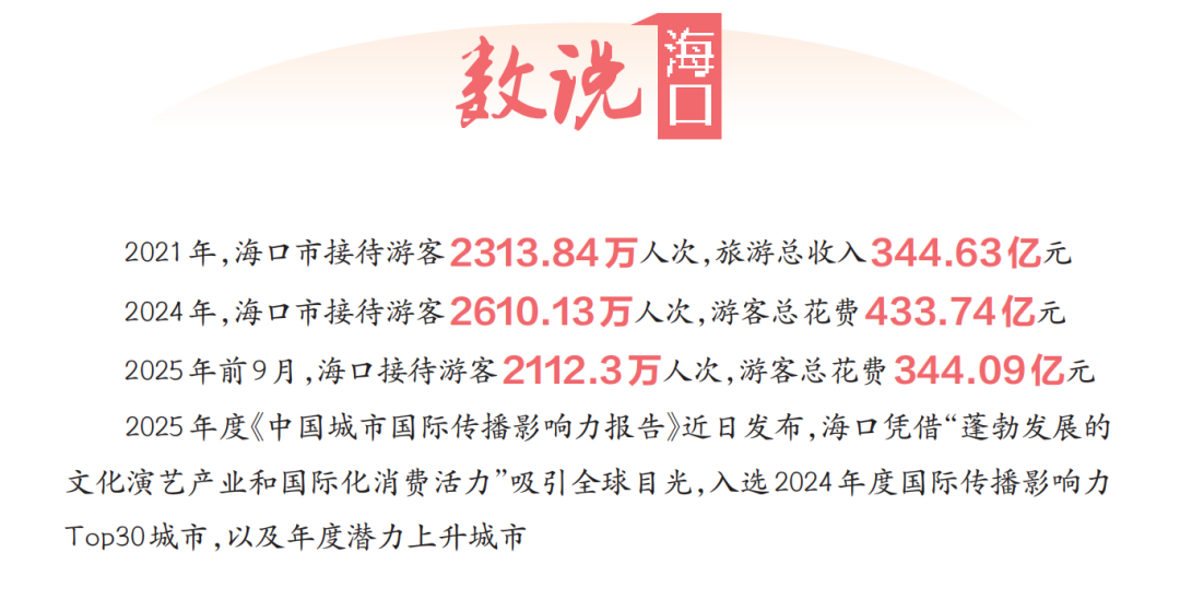 “十四五”以来,海口着力构建文化旅游空间新格局,以文旅融合促进国际旅游消费中心城市建设,推动“文体旅商展”联动发展,打造时尚消费活力之城。