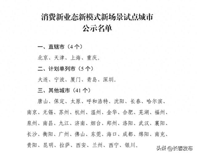 11月20日,商务部网站公示了消费新业态新模式新场景试点城市竞争性评审结果,全国共有50个城市拟入选,长春名列其中。