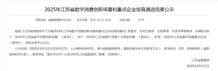 近日,江苏省数据局公示“2025年江苏省数字消费创新场景和重点企业培育遴选”结果,来自花桥的博实(苏州)智能科技有限公司、苏州世航智能科技有限公司的创新项目成功入选“江苏省数字消费创新场景”,入选数量占昆山市总数的一半,充分彰显了花桥在数字技术与实体经济融合发展中的强劲实力,也成为花桥布局数字消费领域、丰富数字消费供给的重要支撑力量。