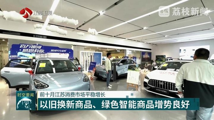 江苏省统计局最新发布数据显示,今年以来,全省消费市场保持平稳增长。特别是10月当月,餐饮收入、部分以旧换新商品及绿色智能商品销售增长较好。