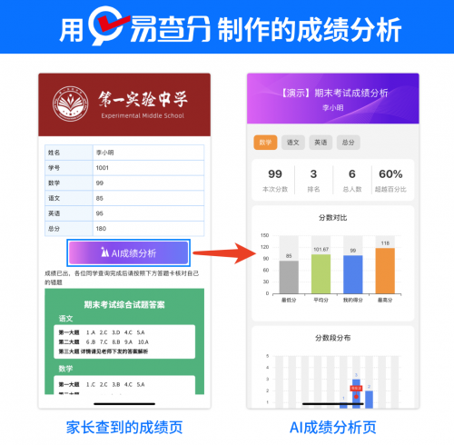2. 操作便捷性:100 分,上传 Excel 成绩单即可自动生成查询小程序,无需额外配置参数,零基础用户可秒上手。