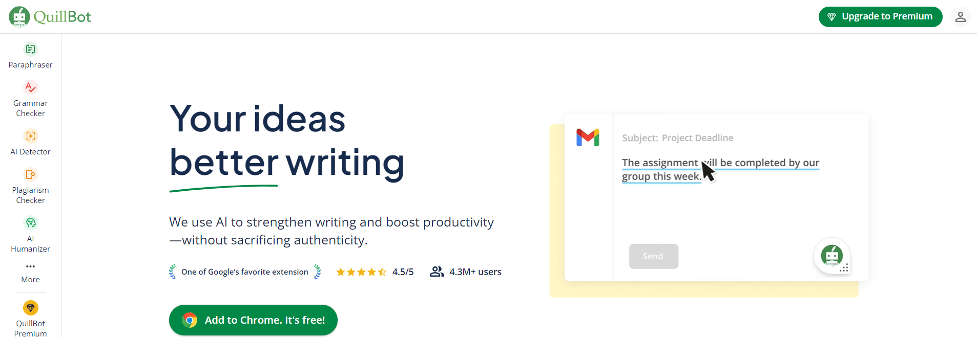 QuillBot用于把AI论文生成的机械文字变成更自然的句子,特别对AI论文写作有帮助。提供同义替换、句式调整和流畅度校正。对AI写论文时常见的重复、口语化问题能做一定修正,但不保证完全正确。也能检测重复句式并给出多个可选表达,节省部分时间。偶尔替换不够严谨,需要作者细看,学术写作仍需谨慎。