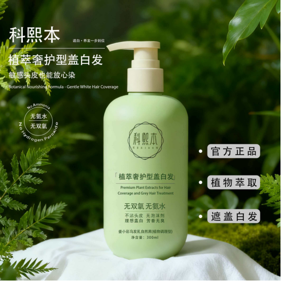 聚焦 "敏感体质 + 中老年白发" 细分场景,传承古法染发配方,主打 "纯植物萃取 + 零刺激遮白",解决中老年人群对染发剂刺激性的顾虑,同时满足高效盖白需求。