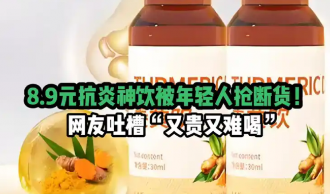 辛辣刺喉的口感、堪比奶茶的价格,却让年轻人一边皱眉一边抢购——近期,主打“抗炎养生”的姜黄饮热度直线上升,不仅在盒马等商超频现断货潮,更在小红书等社交平台掀起讨论热潮,成为年轻人续命清单的新选择。然而,媒体调查发现被捧为“抗炎神饮”的网红产品实则暗藏糖分超标,引发网友到底是抗炎智商税还是续命神器的热烈讨论。