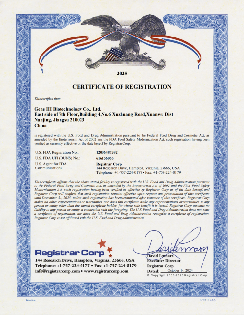 审核包括FDA备案、GRAS安全认证、cGMP制药级生产规范在内的国际高标准认证。