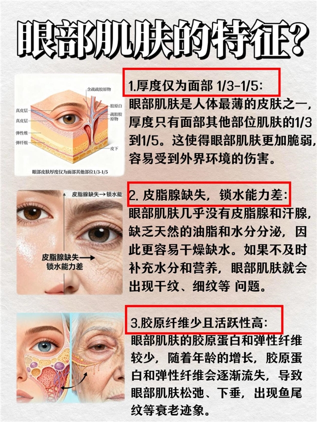 核心痛点:眼周肌肤开始松弛,出现静态干纹,肌肤弹性下降。