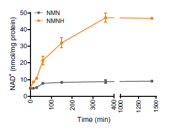 药代动力学研究显示,在时效上,NMNH口服15分钟后NAD+水平显著上升,且在肌肉等组织中能稳定维持长达24小时。自其突破性研究成果被全球顶级学术平台PubMed收录后,引发市场关注。