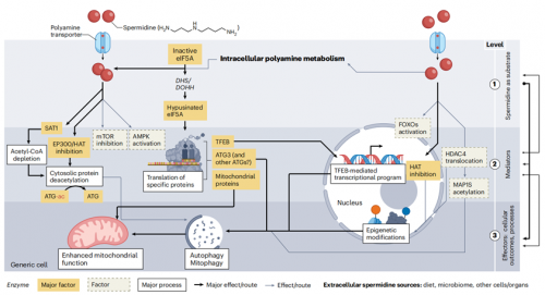 九、提升免疫细胞活性 《Nature》杂志指出,亚精胺是未来最具潜力的抗衰老物质之一。作为一种天然多胺,该成分是自噬诱导剂,自噬是抗衰老的主要机制。亚精胺诱导体外雌性生殖干细胞的细胞保护性自噬,延缓细胞衰老。