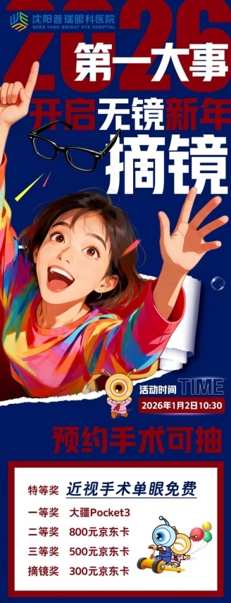 为了庆祝新年的到来,助力大家清洗未来,沈阳普瑞眼科医院特别推出“2026第一大事,开启无镜新年摘镜”活动!