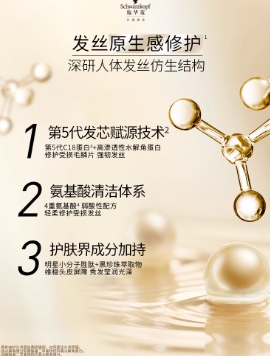 市面上很多洗发水只能做到表面假滑,而施华蔻这款主打的是人体发丝仿生结构修护。它采用了第5代发芯赋源技术,真正做到了“内外兼修”: